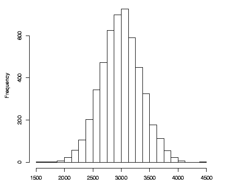 Quando nossa planilha tiver um número bem grande de recém-nascidos com seus respectivos pesos, poderemos plotar um histograma de frequências destes valores.